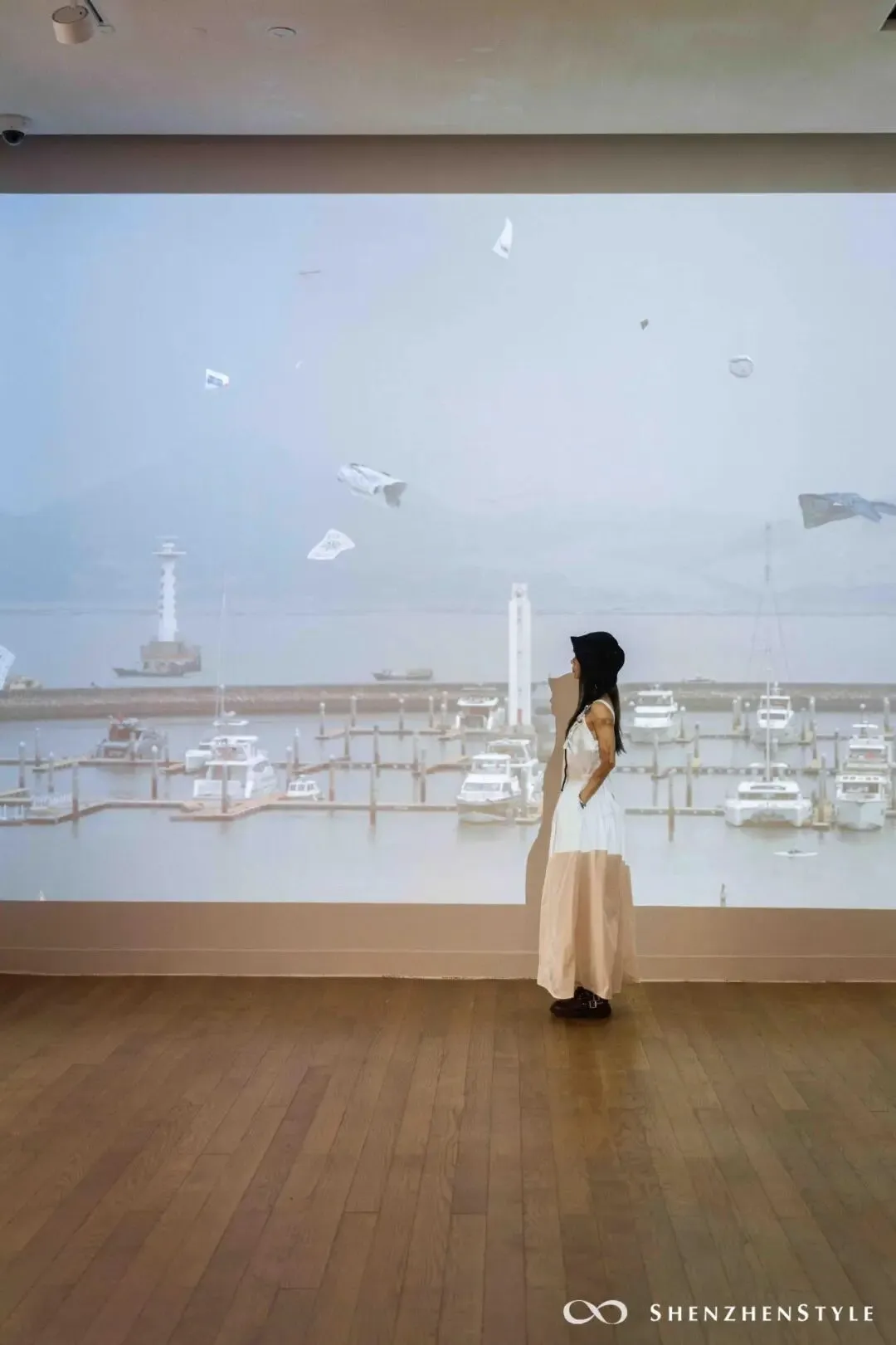 何为真实?何为虚幻?张培力新作《飘浮物(三)》,将真实的香港海岸线与 AI 生成的虚拟漂浮物交织在一起,构建出真假难辨的“伪真实”,让观众在真假难辨中,找寻漂浮的诗意与人性。
