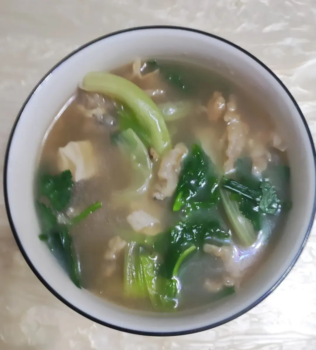 就拿昨天晚上来说吧。我们五六点到家,做了鱼汤,加上胡辣汤料,再配上生菜、面条菜、两个烧饼、三个馅饼。简单、暖和、落胃。