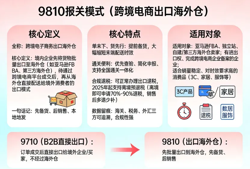 很多卖家存在一个误区,认为办理了9810资质,就一定能拿到退税。实际上,9810只是一种通关方式,它解决的是“如何把货卖出去”的问题;而退税则是一种税收政策,关乎“能省多少钱”。两者有着本质的区别。