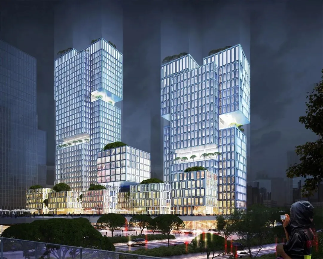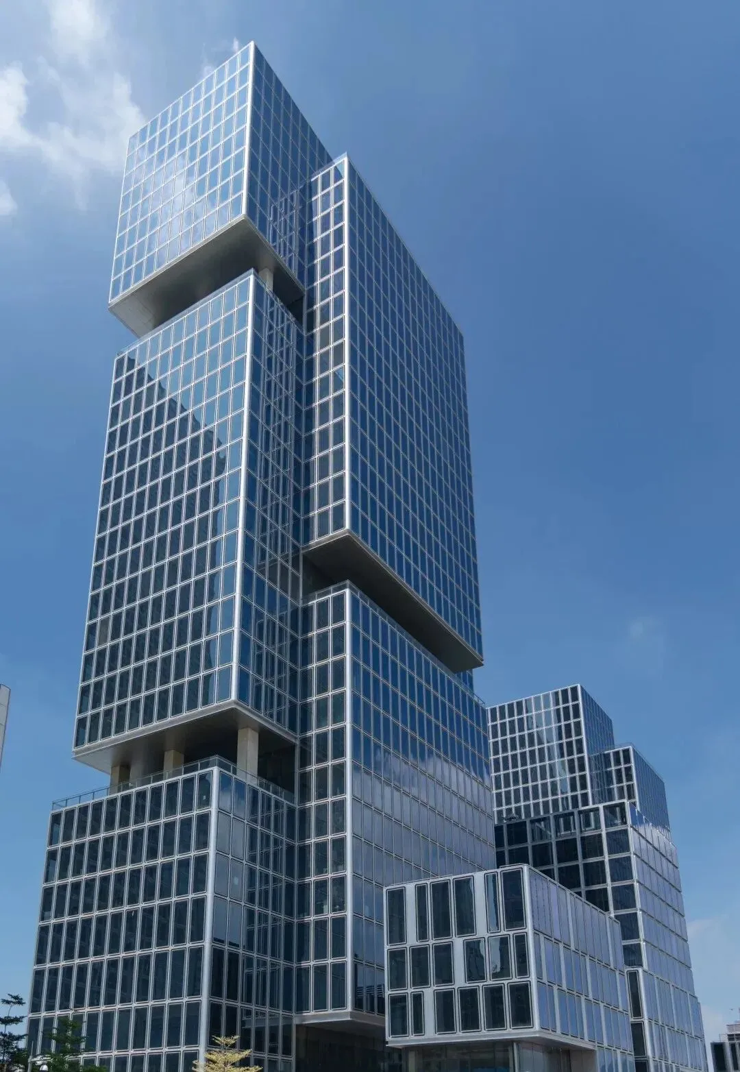 建筑组成:由三座塔楼及裙楼组成,A座塔楼高150米(32层)、B座塔楼高约95.8–100米(21层)、C座塔楼高53米(10层),均采用钢管混凝土框架-钢筋混凝土核心筒结构体系。功能定位:以办公为主,配套商业、通信机楼等,服务天音通信在智能手机及移动设备软硬件领域的总部需求。开发背景:项目于2018年左右开工,属于深超总首批企业总部项目之一。图片来自:gmp、建筑细部、saul archiman