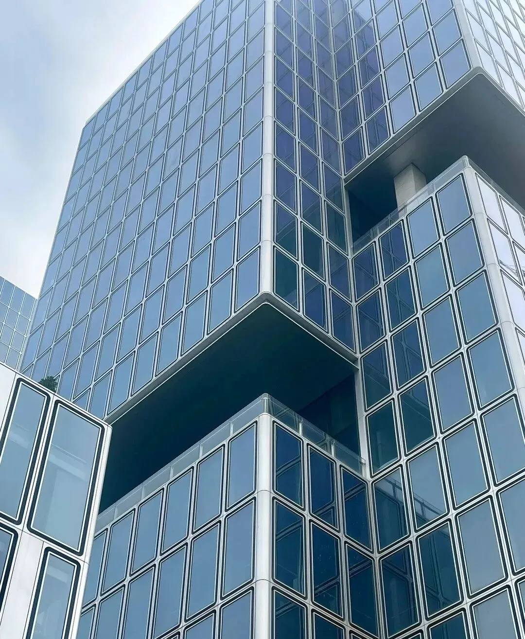 项目强调与周边环境融合,包括绿化步行桥、中央公园整合、空中花园等,面向东侧中央绿地公园和北侧湿地公园,提供休闲、会议与交流场所。设计注重消除公园与项目平台的边界,形成差异化吸引力。建筑在多个层面与周围地块建立联系,成为都市网络节点,呼应深超总“通山达海”的生态布局和高密度商务区定位。此外,天音大厦的建筑幕墙设计更是别出心裁。其灵感源自天音通信的主业——智能手机,整体立面完整性极高,一个幕墙单元仅由一块玻璃与型材组合而成,既展现了科技产品的精致与细腻,又体现了建筑艺术与科技元素的完美融合。幕墙单元四角设计为平滑的圆弧造型,结合室内平开窗,实现了室内外互通,为建筑增添了灵动与活力。