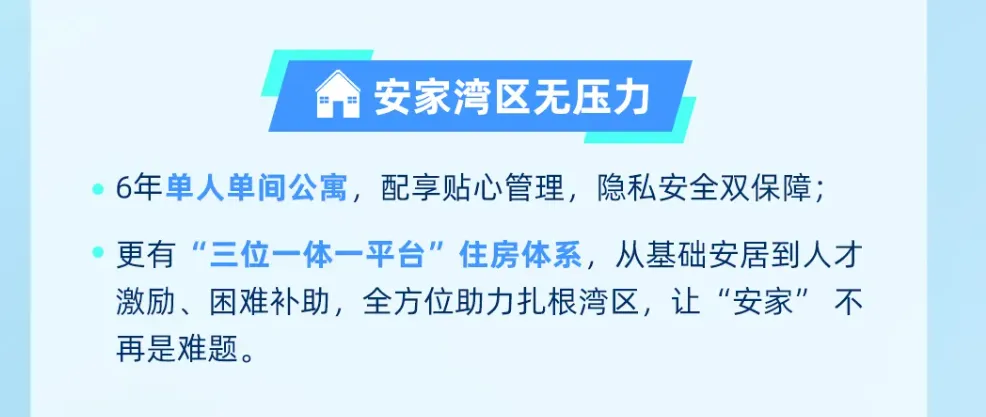 孩子来深圳求职,能享15天免费青年驿站,在深圳工作,本硕博最高能领3万、5万、10万的一次性入户补贴,租房补贴1250/月,连续24个月,落户深圳更是免费秒批,更别说各区还有额外现金补贴!