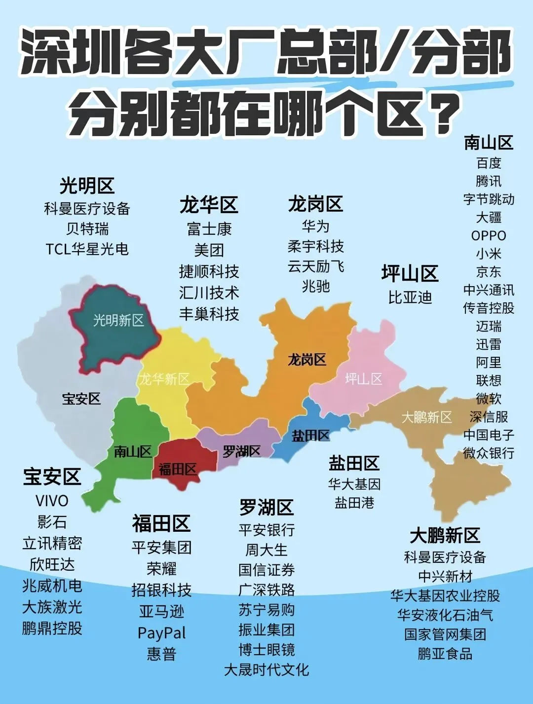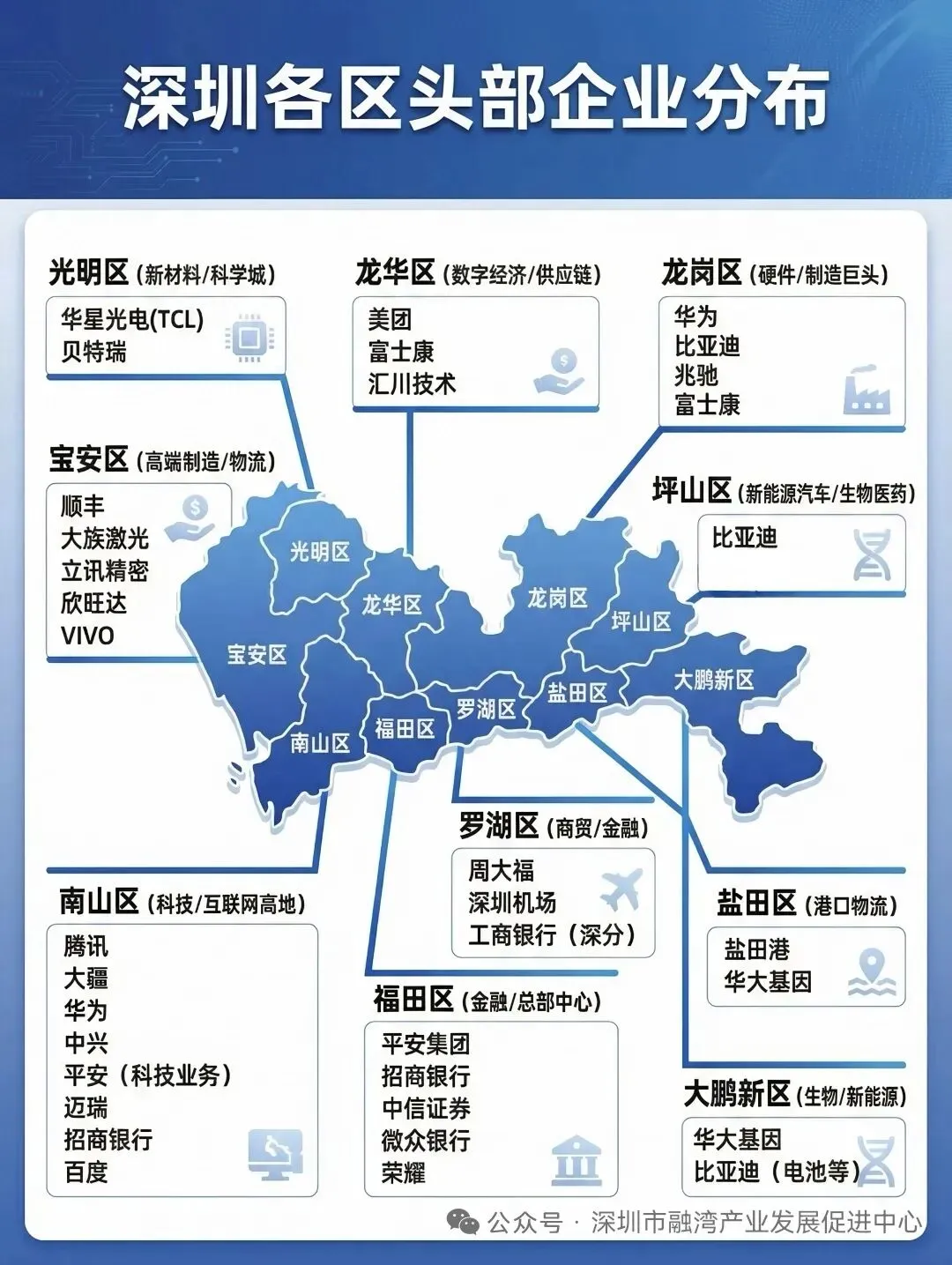 龙头企业:顺丰(物流枢纽)、大族激光(工业激光设备)、立讯精密(苹果供应链)、欣旺达(电池)、VIVO(终端品牌)、影石创新(运动相机)、兆威机电(微型传动)、鹏鼎控股(PCB)