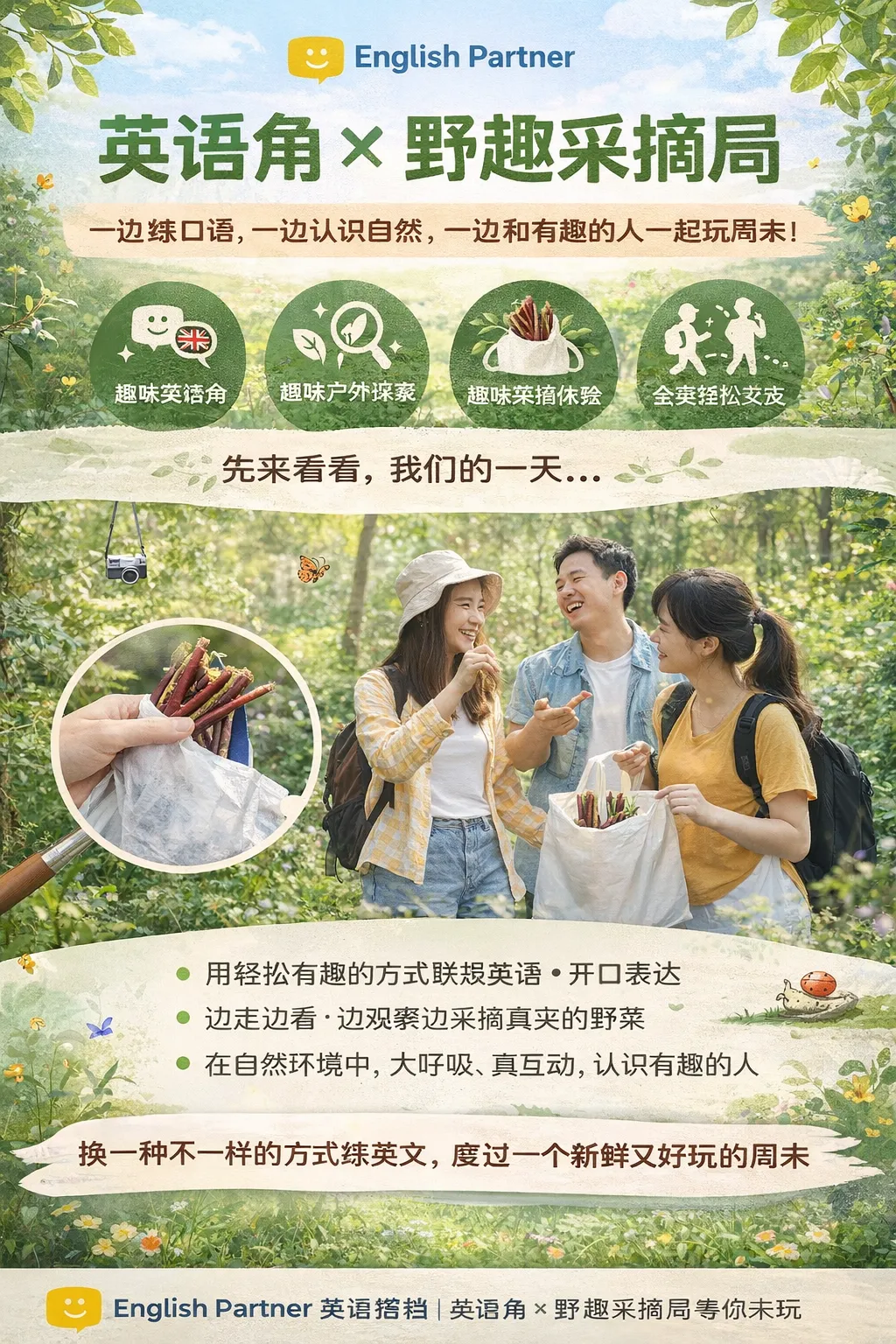 English Partner 英语搭档|英语角 × 野趣采摘局一边练口语,一边认识自然,一边和有趣的人一起收获周末!