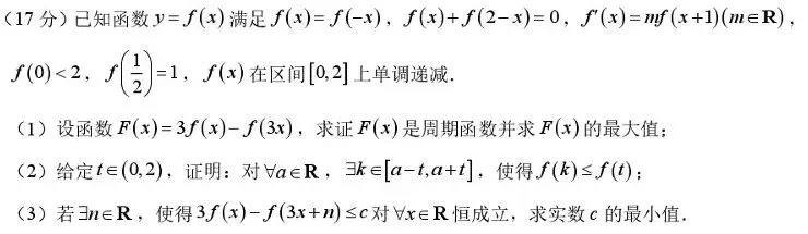 >深圳高级中学一道导数压轴题,难度较大