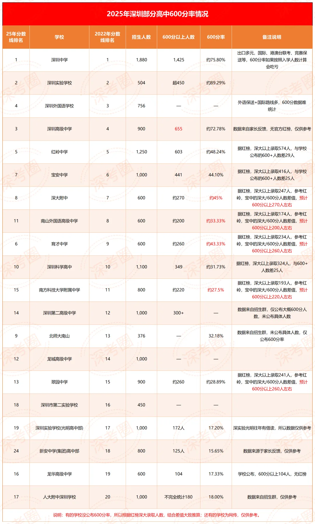- 关注数据口径:部分学校 600 分率基于招生人数计算,实际参考人数可能存在差异,数据仅供参考,最终以学校官方公布为准。