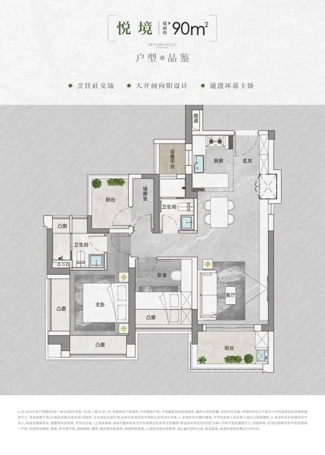 🖼空间美学 | 新规下的迭新演绎:以高使用率、精细化场景、可进化空间,精致演绎新规下的栖心奢宅,将空间让渡给生活,不设边界重构亲密家庭社交场域,引领悦已栖心的生活美学。 面积与户型:推售房源涵盖建面约90-95-105-143㎡的3-4房,共298套可售房源。其中,95/105㎡三房户型以朝东为主;90㎡三房户型朝西;143㎡四房大户型东南朝向。