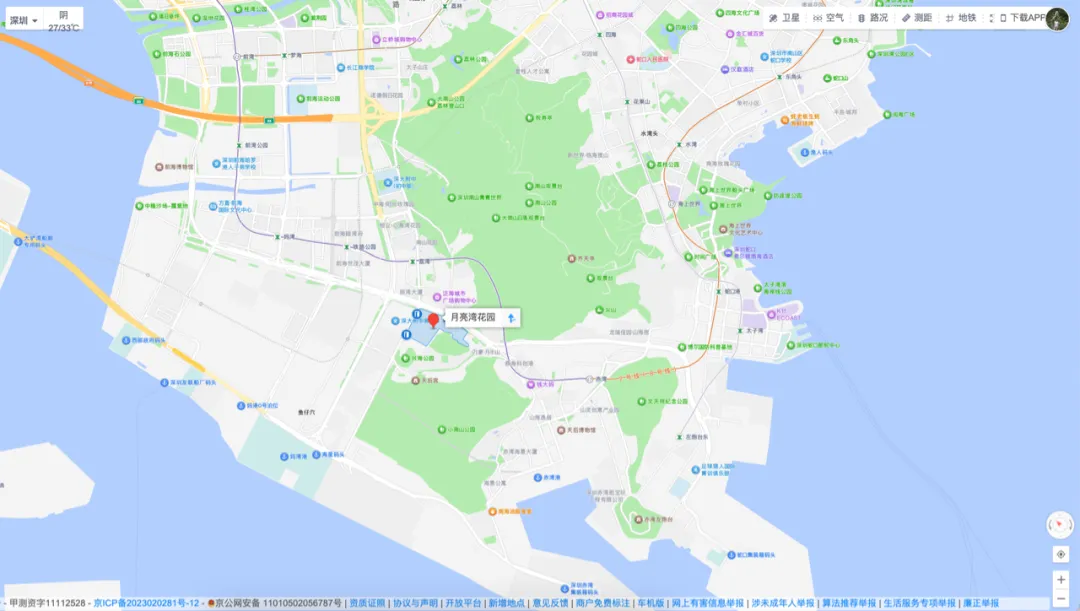 月亮湾花园,属深圳市南山区的南山街道办管辖,位于南山区深大附中高中部隔壁;由南油房地产开发有限公司在1993年开建,1995年开始陆续交房入伙,由42个楼栋组成,总占地面积约143000平方米,总户数约2076套,停车位约600个,物业为深圳市南油物业发展有限公司。