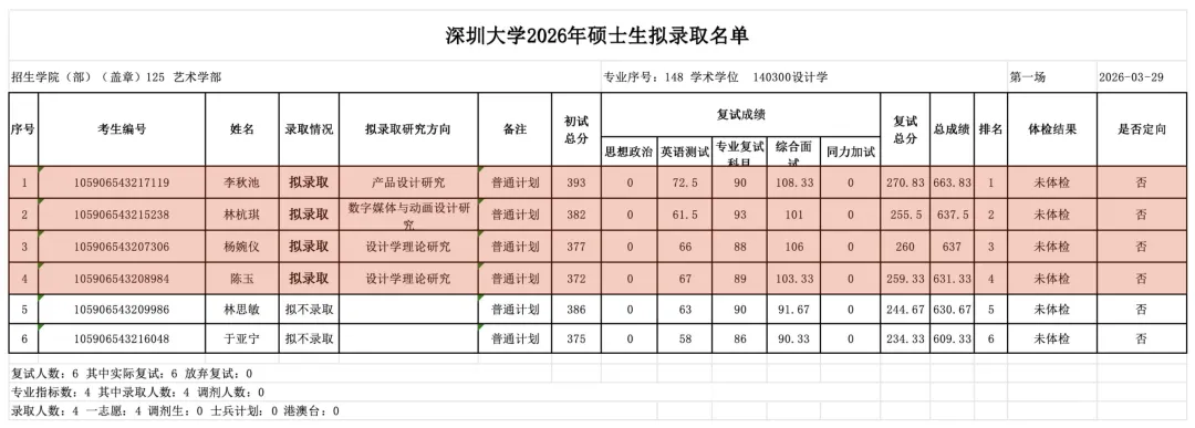 >2026年深圳大学艺术学部拟录取名单发布【工作室共有15名同学录取!!!】