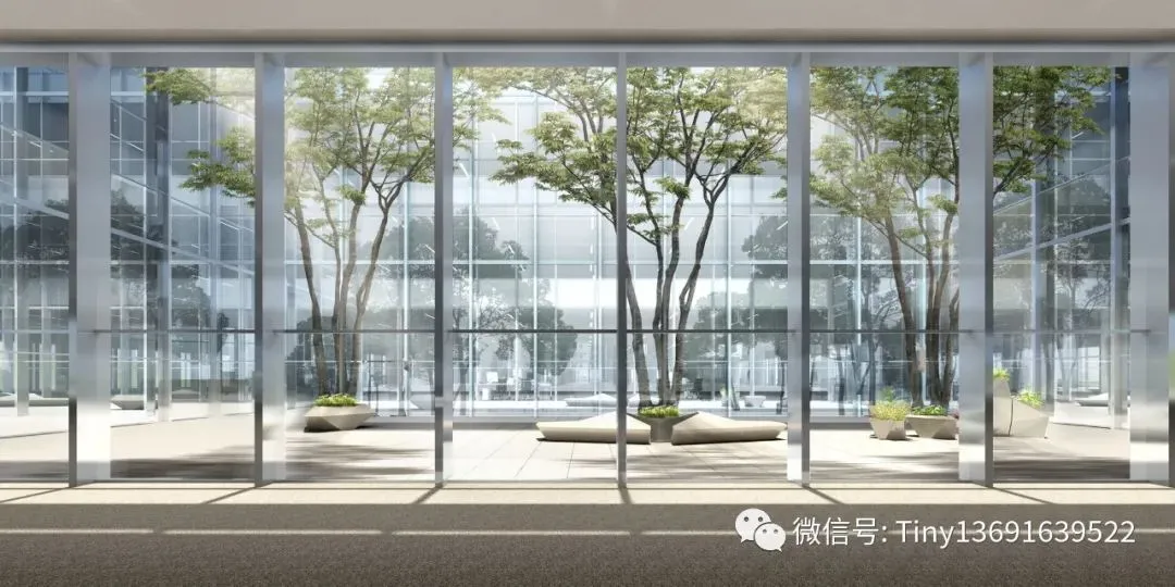平面内设置绿色通高中庭,提升总部办公舒适度。