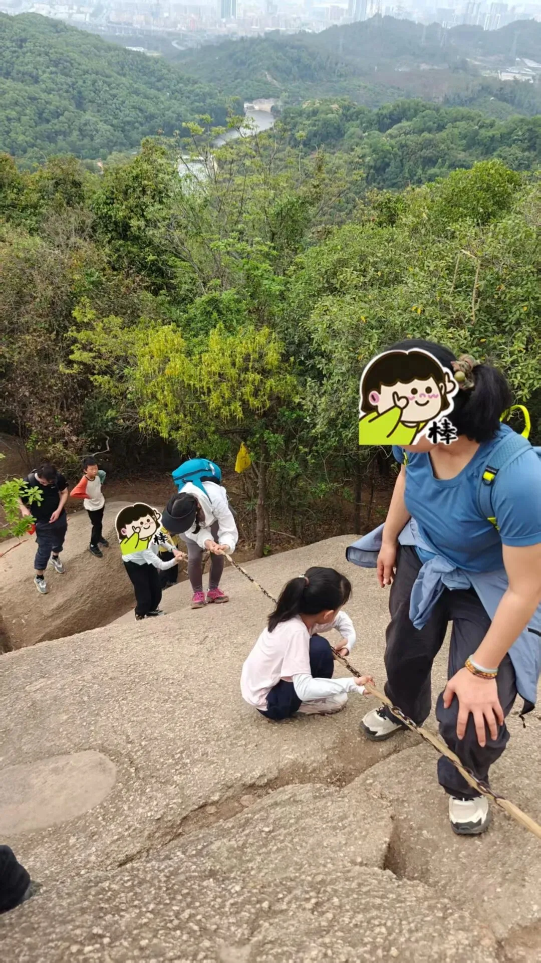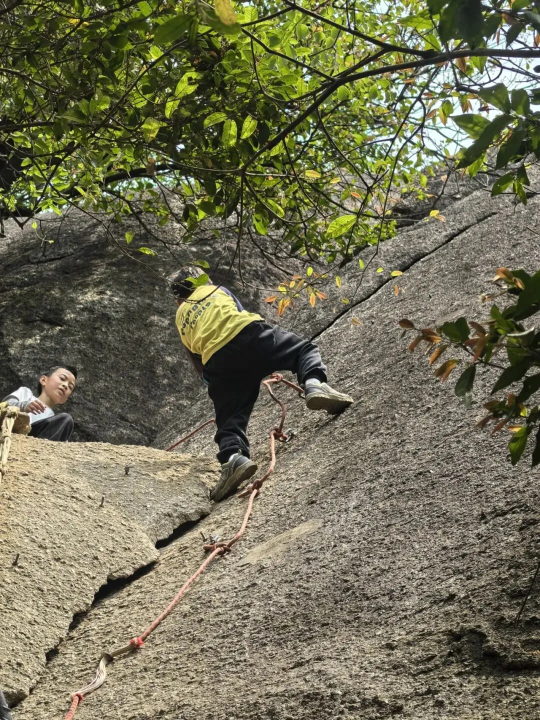 我在后面胆战心惊地喊:“弟弟等等我!”“哥哥那里危险!”“你倒是抓紧啊!”前面的娃头也不回,像只猴子一样,蹭蹭蹭就上去了,想拍点照片视频都难抓取。