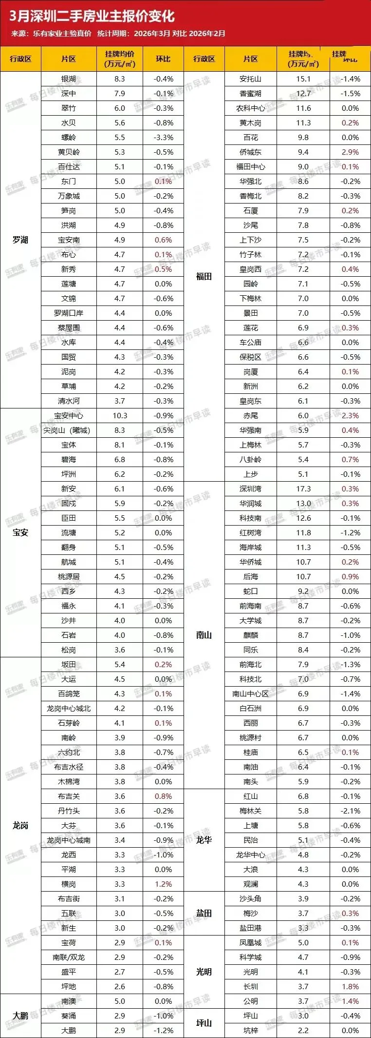 总的来说,深圳楼市已经告别了“单边下行”的阶段,进入“企稳回暖、分化明显”的新阶段。29个片区的报价上调,是市场信心修复的信号,也是深圳楼市“健康发展”的体现。后续随着4月公积金新政等红利的叠加,“金三银四”的成色有望进一步夯实,但全面回暖仍需等待居民收入预期和房价预期的实质性修复。