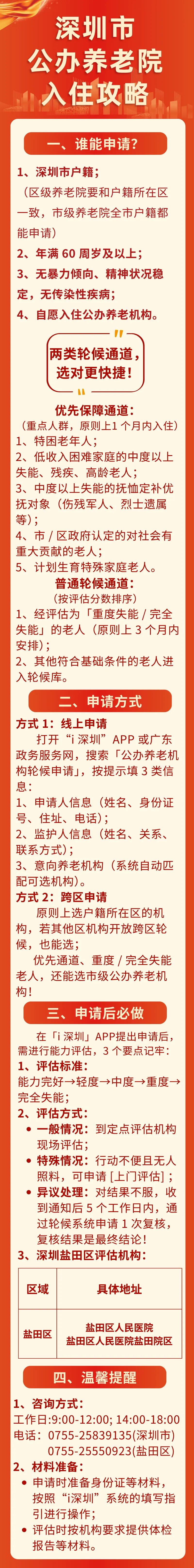 深圳最新《公办养老机构入住评估轮候管理办法》已实施,明确了优先保障人群、简化了申请流程,还划定了入住时限!