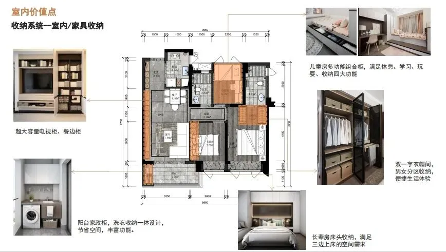 ①玄关收纳②客厅收纳③厨房收纳④ 卫生间收纳⑤主卧收纳⑥儿童房收纳⑦老人房收纳