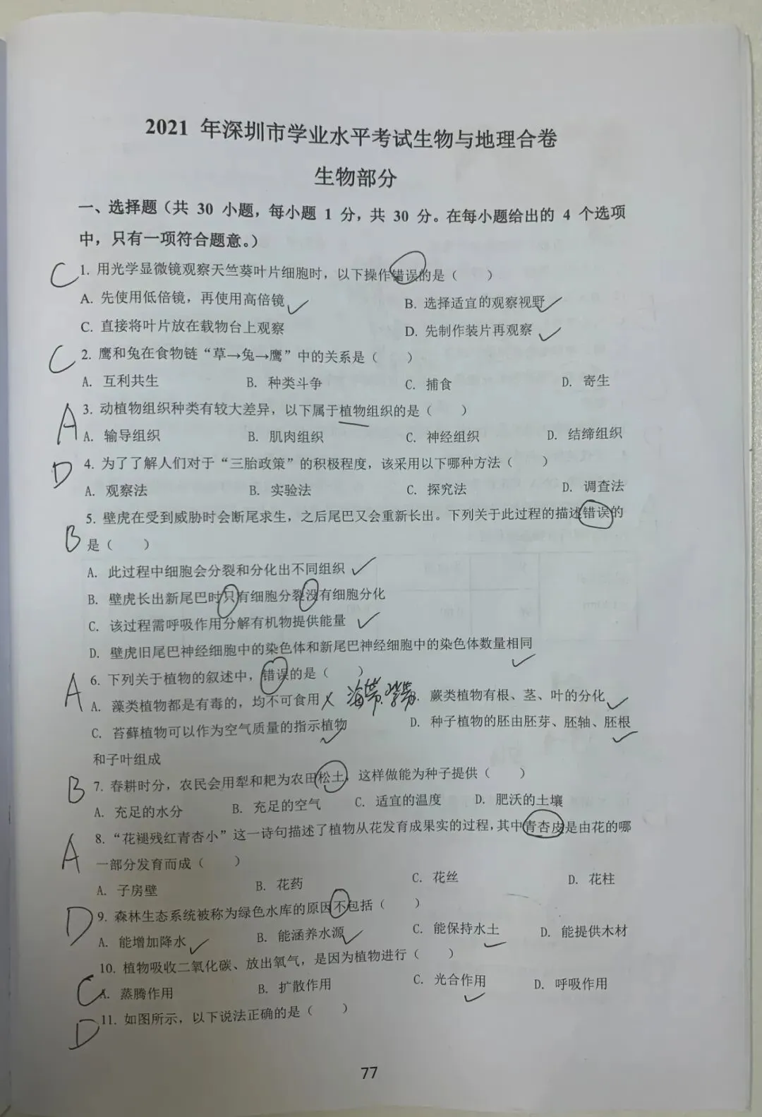 初二家长和学子必读:深圳市2021年初中学业水平考试生地会考试卷分析