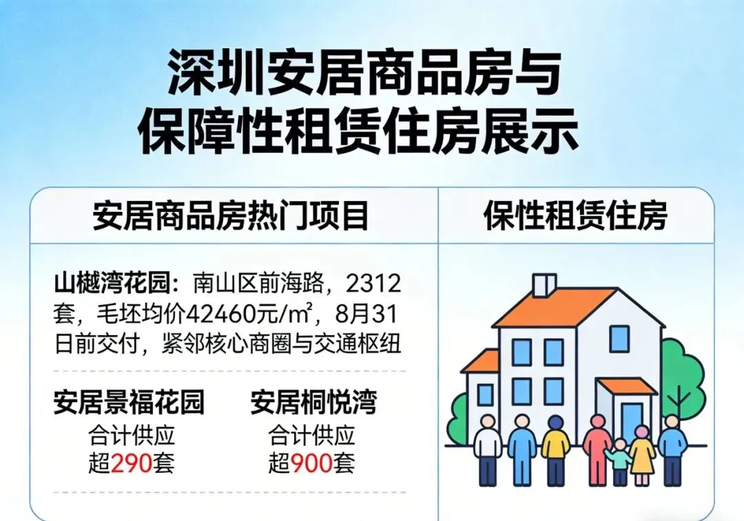 作为深圳住房保障体系的重要组成,安居商品房与保障性租赁住房,如同两股温暖的力量,为不同需求的群体撑起一片栖居天地。此次公开配售的安居商品房,涵盖多个热门项目,其中山樾湾花园、安居景福花园、安居桐悦湾等项目备受关注,合计供应房源超2900套,精准匹配市民对“自有住房”的向往。山樾湾花园位于南山区前海路,本次供应2312套房源,配售均价42640元/㎡(毛坯),预计8月31日前交付,紧邻核心商圈与交通枢纽,让业主既能享受便捷生活,也能依托区域发展红利,实现“安居”与“发展”的双向奔赴。