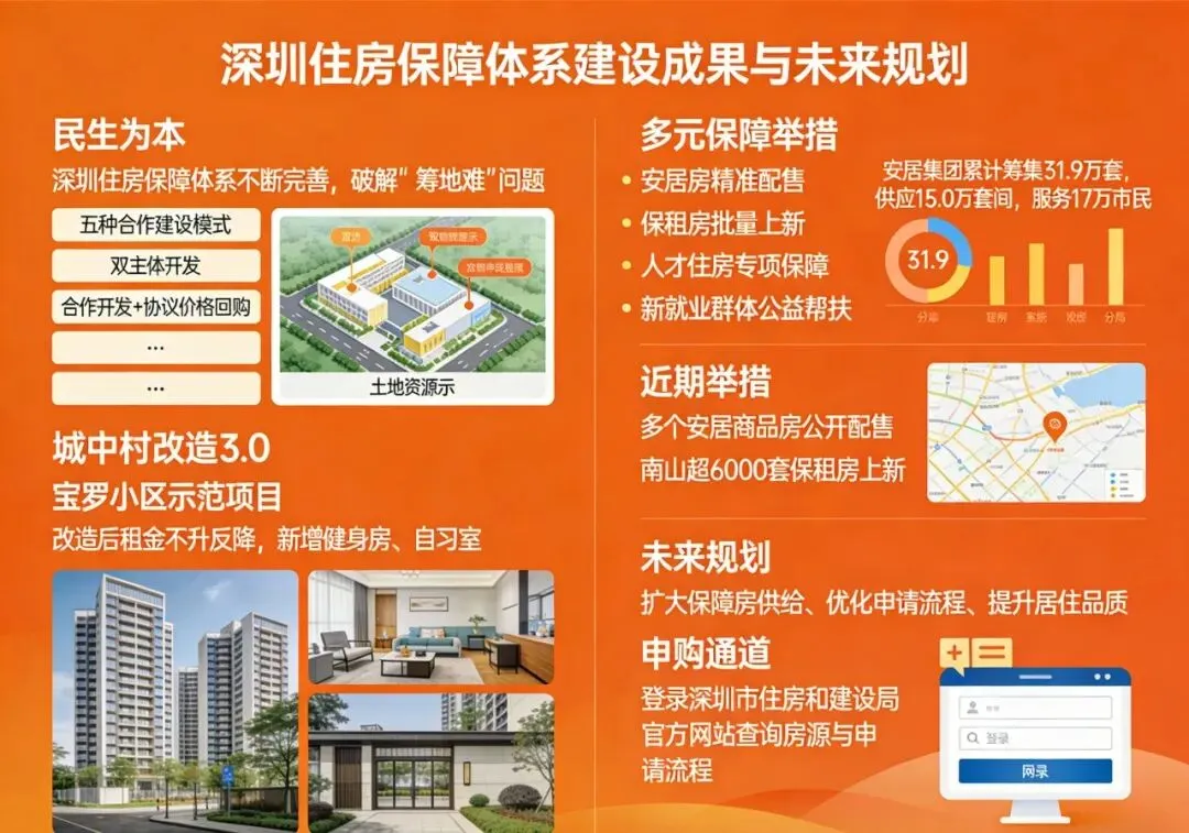 从安居房的精准配售到保租房的批量上新,从人才住房的专项保障到新就业群体的公益帮扶,深圳正以多元举措,织密住房保障网。数据显示,仅安居集团就累计筹集建设保障性住房31.9万套,供应15.0万套间,服务近9000家企业、17万市民,越来越多的人在这座城市找到属于自己的温暖港湾。此次多个安居商品房公开配售、南山超6000套保租房上新,不仅是深圳住房保障工作的又一重要举措,更是这座城市对奋斗者的致敬与回馈——它用实实在在的福利,告诉每一位追光者:深圳不仅有逐梦的舞台,更有安放心灵的居所。