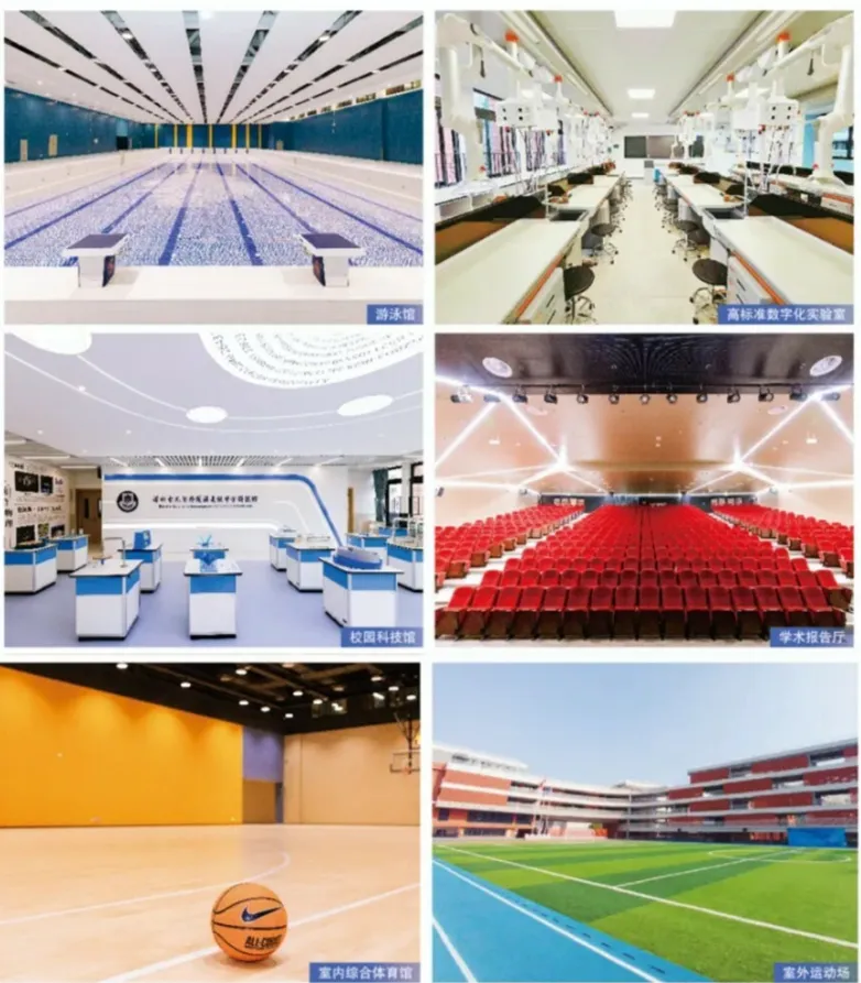 学校已建设包括图书馆、学术报告厅、朗读亭、书法室、围棋室在内的高雅人文场所,语音室和多语种教室等语言学习空间,以及游泳馆、综合体育馆、击剑馆、音乐美术舞蹈室、智慧琴房等健体美育空间,为学生提供舒心的校园生活。