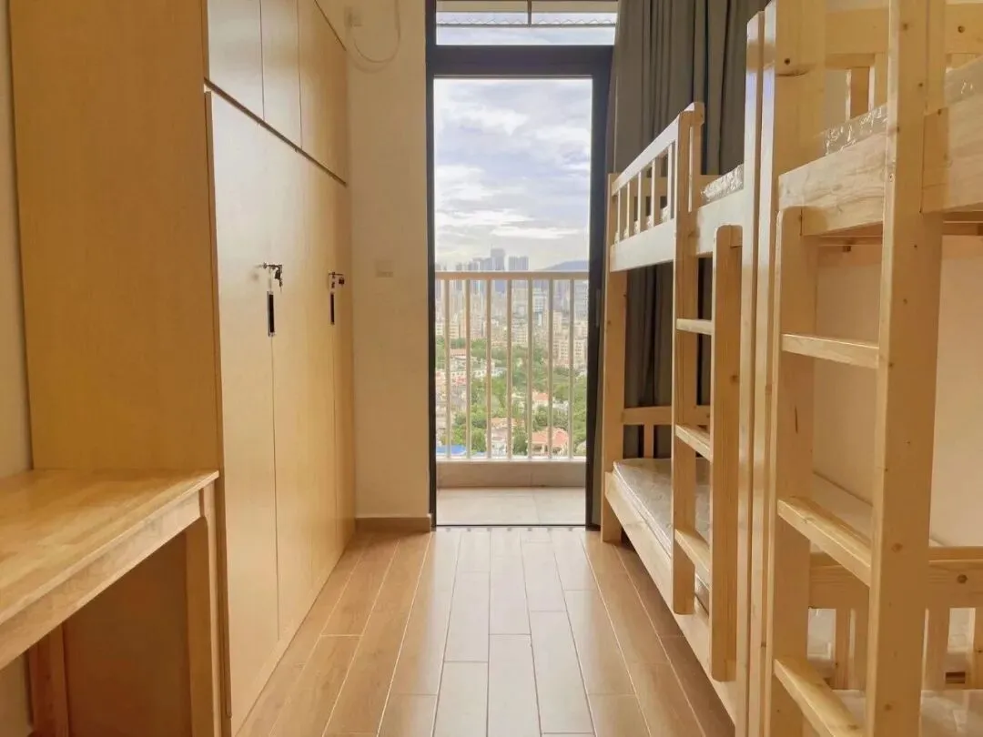 学校星级住宿条件,4人间,上下铺,实木。领跑全市公办高中,实木家具,独立阳台,户内洗手间。立于阳台放眼望去,梅花山庄花园景观尽收眼底,视野开阔,心情舒畅。配套有洗衣房,能保障学生日常生活所需。