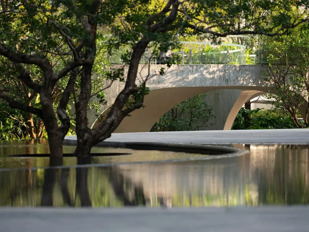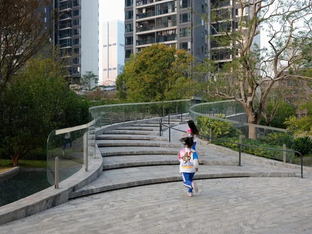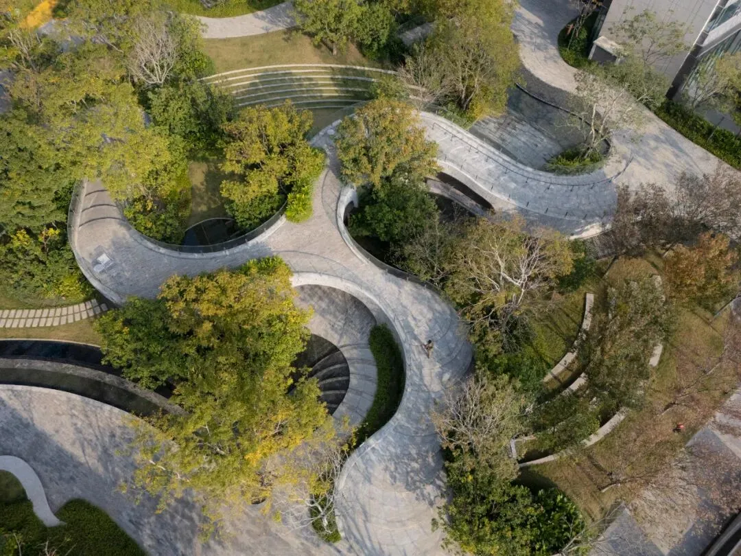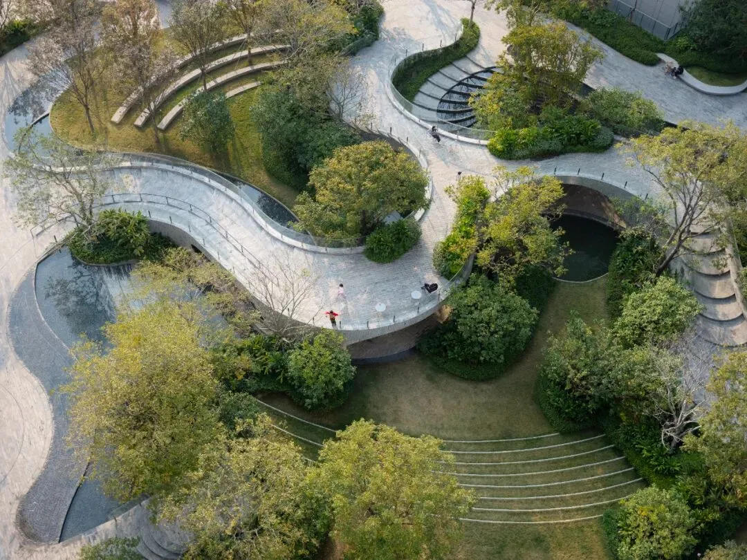The Park is a newly completed residential project by TROP in Shenzhen. Centered around the concept of “a continuous journey,” the design does not treat the landscape as a single flat plane, but rather creates a daily garden to be wandered and lingered in through subtle changes in topography and interconnected layers of space. Paths rise and fall with gentle slopes, weaving a continuous rhythm of movement among trees, water, and light; spaces open and contract, guiding the body to move while allowing the mind to wander.