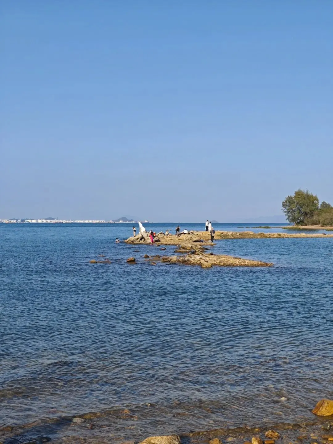 海边没有成熟的沙滩,无法下海玩耍,但是在晴天,站在岸边看看这湖蓝、湛蓝,渐变色的大海,就能让人的心情开阔又舒畅。