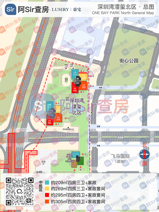 这个户型的大致布局算是此前高区403/472㎡的微缩版了,位于楼栋北向,全屋三面采光。四房三卫(双套间)设计,主阳台朝东,大采光面朝北,主卧和次卧套朝西。北边挨着登良路,阳台东北边的视野宽度还可以。大家如果想知道具体景观如何,可以联系我们看景观建模VR,目前2-1栋模型已经完成。这个户型的大致布局算是此前295/349㎡西南户的微缩版,位于楼栋西南边。同样是四房三卫(双套间)设计,比较特别的是这个户型主阳台朝正南看小区园林,侧东南看公园,不过南面视野会看到最高那栋公寓楼。另一边则跟295㎡类似,四个次卧都是大采光面朝西。2-1栋中最大的户型,位于楼栋东南边。户型是四房三卫(双套间)设计,相比同栋其他户型,这个主卧套和次卧套空间较大,还增设了一个家政间。同样地这个户型主阳台朝正南看小区园林,侧东南看公园,不过南面视野也是会看到最高那栋公寓楼。不过高楼层(100米以上)视野还是很不错的,能够远眺深圳湾大桥、蛇口。另一边大采光面朝东,可能会跟未来东侧的规划商业用地(限高150米)存在部分对视。2-1栋的202-225-258㎡户型将最快在4月入市,联系指定官方销售看房 获取 景观建模VR + 南区2-1栋带尺寸户型图 + 使用率数据 + 存量销控 + 日照模拟。我们做了深圳湾澐玺全户型全楼层景观建模,加群获取: