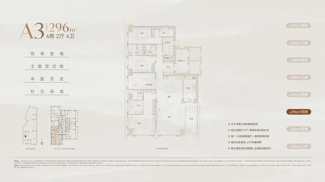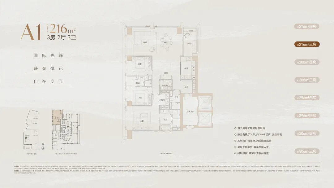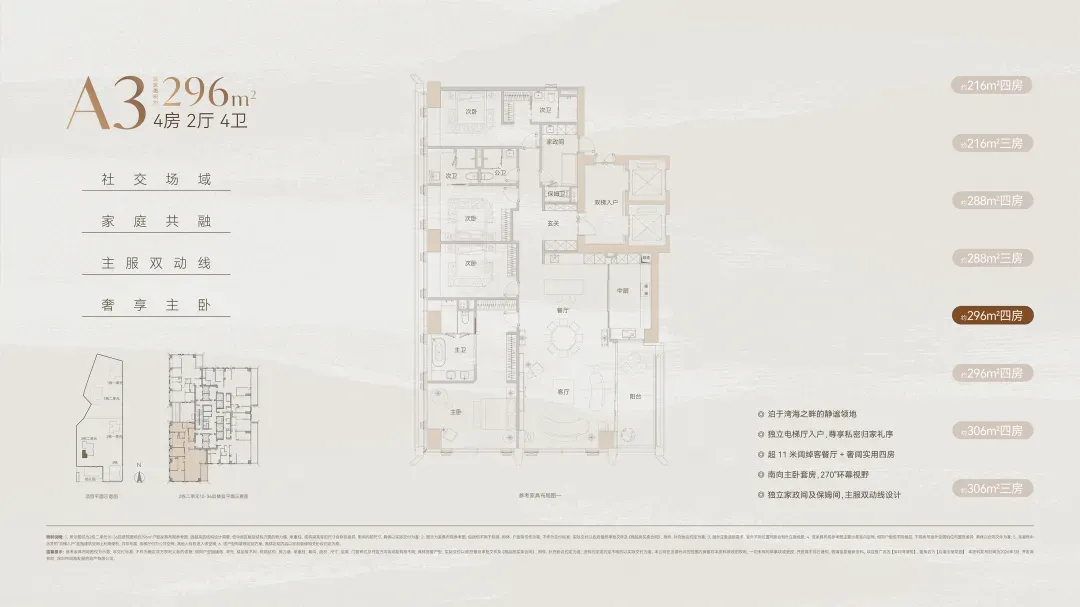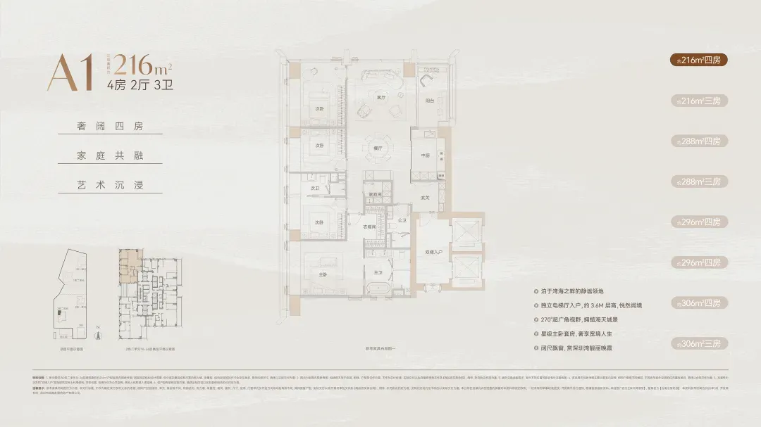 预算在3000-3500万之间的话,这个216㎡户型就很好选了,这个总价段就一个户型,去年北区同分布位的209㎡也是最快售罄的。