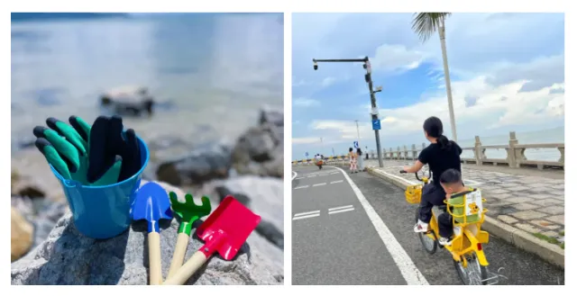 亲子双人骑行自行车免费骑行2小时,沿着海边骑行