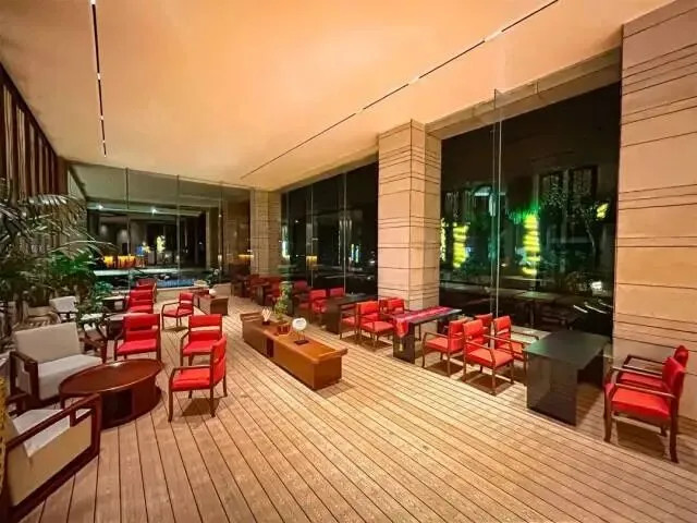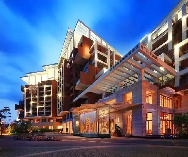 酒店占地面积近5万平方米,其中建筑面积约4万平方米,坐拥1.5万平方米生态园林。这里巧妙融合广府文化底蕴与海洋风情特色,中式红墙与山海景致相映成趣,龙岐湾的碧波荡漾与七娘山的秘境风光皆可尽收眼底。