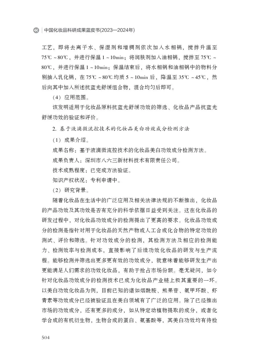 《中国化妆品科研成果蓝皮书(2023—2024 年)》由中国抗衰老促进会化妆品产业分会、北京国妆科创自然科学研究院以及中国化妆品产学研协同创新平台共同组织。全书580页,57.8万字ISBN978-7-5136-8011-0,中国经济出版出版。