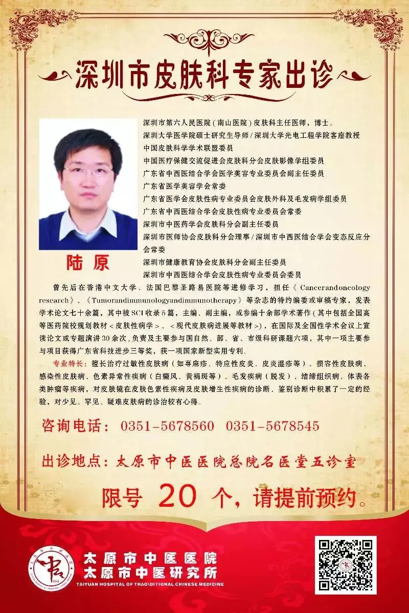 皮肤科专家陆原教授出诊信息