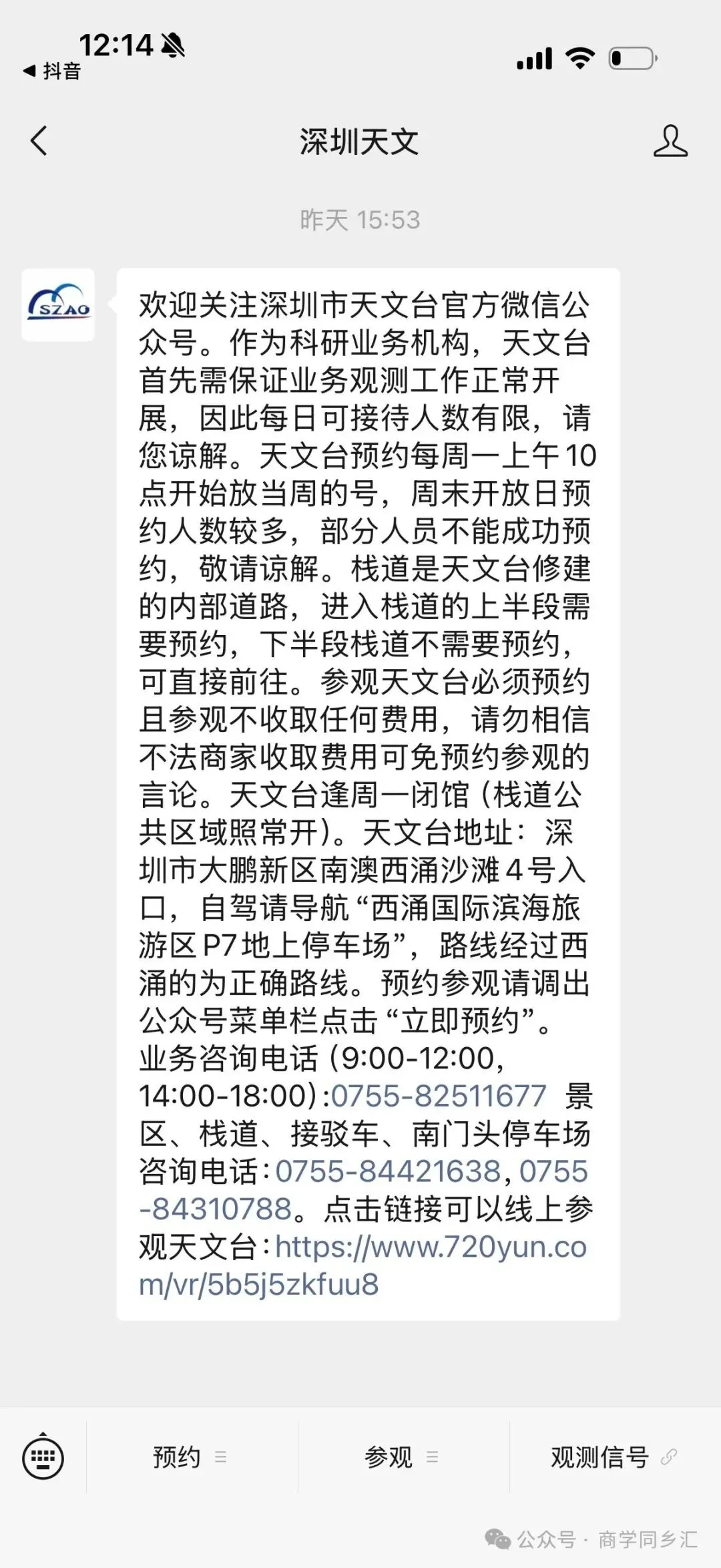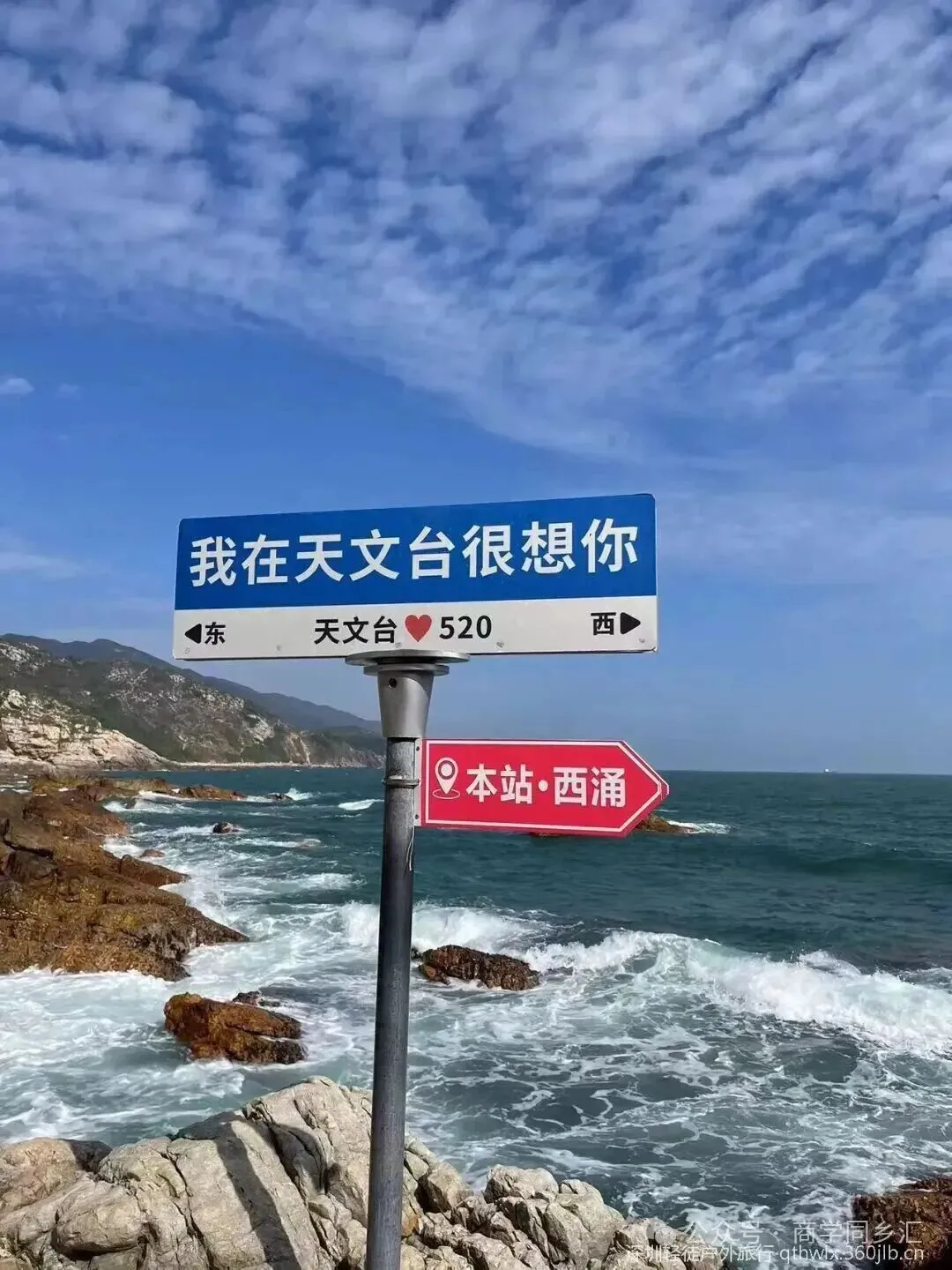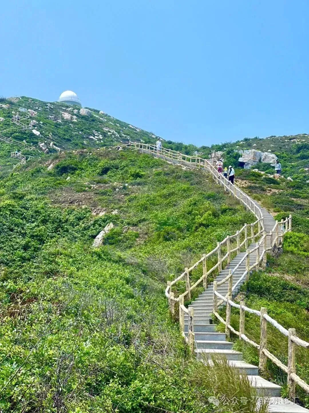 深圳市天文台位于大鹏新区南澳街道西涌(天文台参观需要提前预约,预约时间是每周一上午10点放号,同学们请自行预约,坐大巴车的同学可以商量在海边坐等参观完毕的同学一起回城)。由一级级台阶构成,从海边一路延伸到天文台的海天栈道,海天一色风景一流。约600左右的台阶从下往上看就好似天梯一样直入云端,约半小时左右即可到达海拔200多米的天文台,拾阶而上,似要乘风而起,享受无以言说的自由时刻!