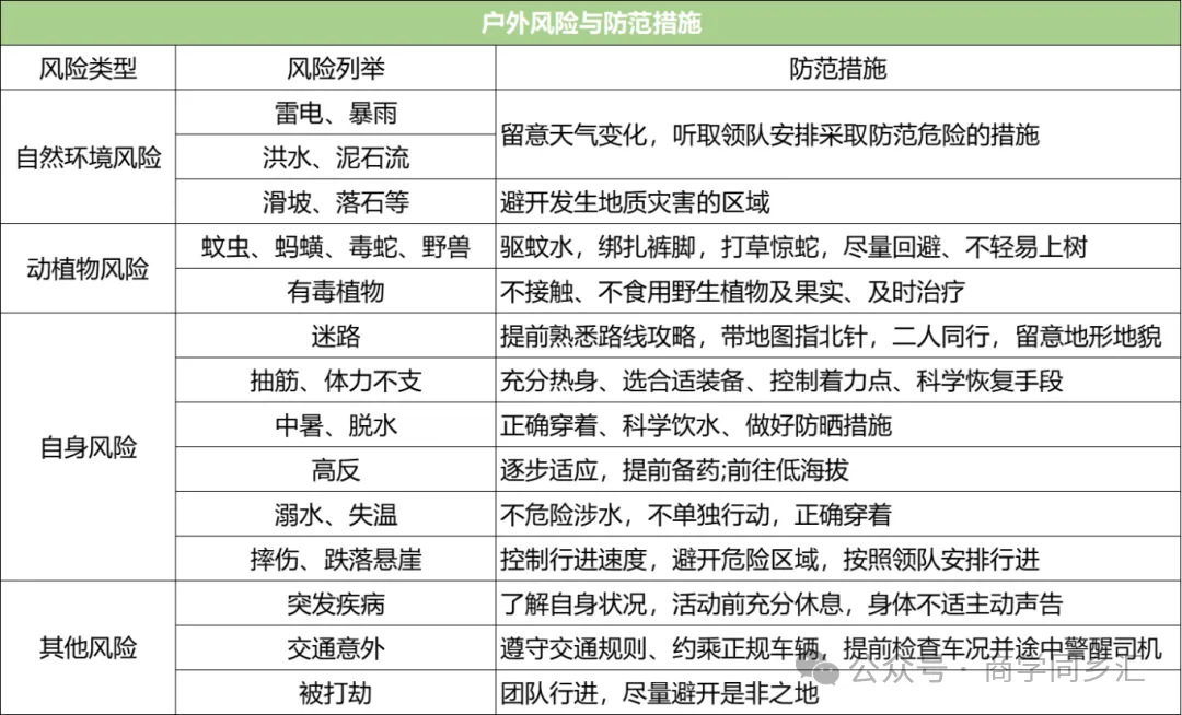 5. 出发前请确认已购买保险,将活动信息和领队联系方式留给紧急联系人;