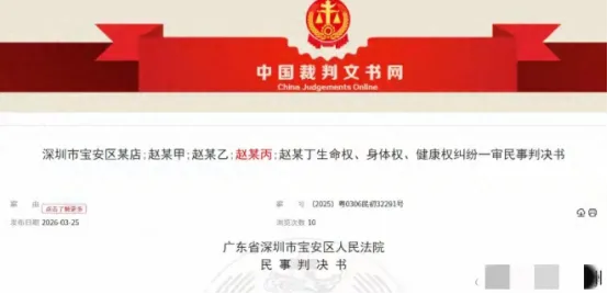 近日,深圳市宝安区人民法院的一纸判决,为这起悲剧划上了阶段性的法律句号:法院判决叔叔、舅舅各自赔偿5万元,酒店此前经调解已支付3万元。而赵某本人,作为完全民事行为能力人,需对其死亡结果承担主要责任。