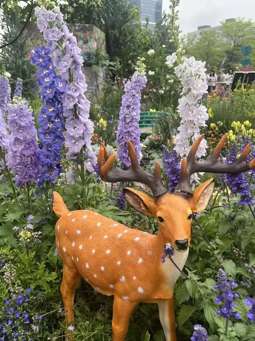 一鹿🦌好运,一鹿🦌平安。看到栩栩如生的麋鹿,真的开心😊。它在花丛中,就显得非常的真实,非常的清新自然。