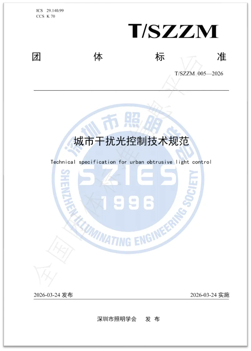 导语:深圳市照明学会团体标准《城市干扰光控制技术规范》T/SZZM 005—2026近日正式发布并实施。奕斐环境规划设计(上海)有限公司参与了本标准编制,相关技术研究与方法探索依托奕斐低碳可持续环境研究院开展。这项标准回应了光污染入法后的现实需求,也为城市夜间环境治理提供了更清晰的技术路径。