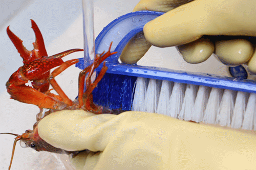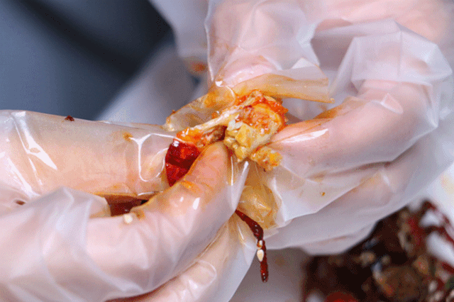 从洗虾、刷虾、剪虾头、去虾线到开虾背等9道清洁工序,每一步工序都不会减少。即便店内已经高朋满座,松哥都不会在洗虾工序上偷懒,认真和放心就是这么来的。