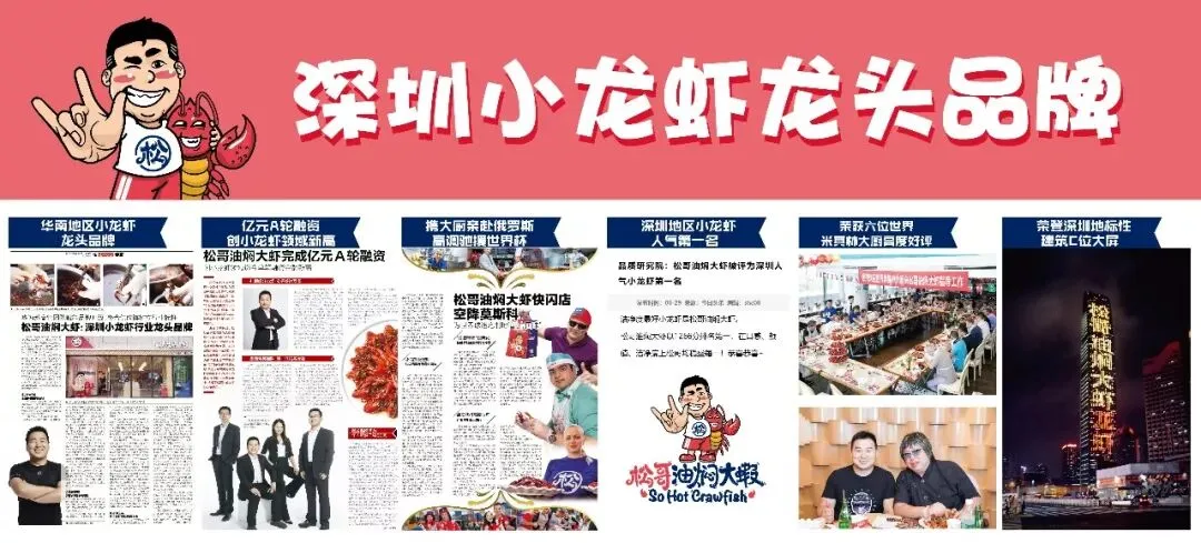 夏天如果没有小龙虾作伴,势必是不完美的。在深圳,家喻户晓的小龙虾大佬非松哥油焖大虾莫属,直接登顶深圳消费者测评第一。不仅荣获2019“李锦记”世界厨王争霸赛金奖,还完成了1.2亿元的A轮融资。更是火到在俄罗斯开了小龙虾界第一家国际快闪店,获得世界米其林大厨梁经伦的认可,这样的松哥油焖大虾,不吃都不行。
