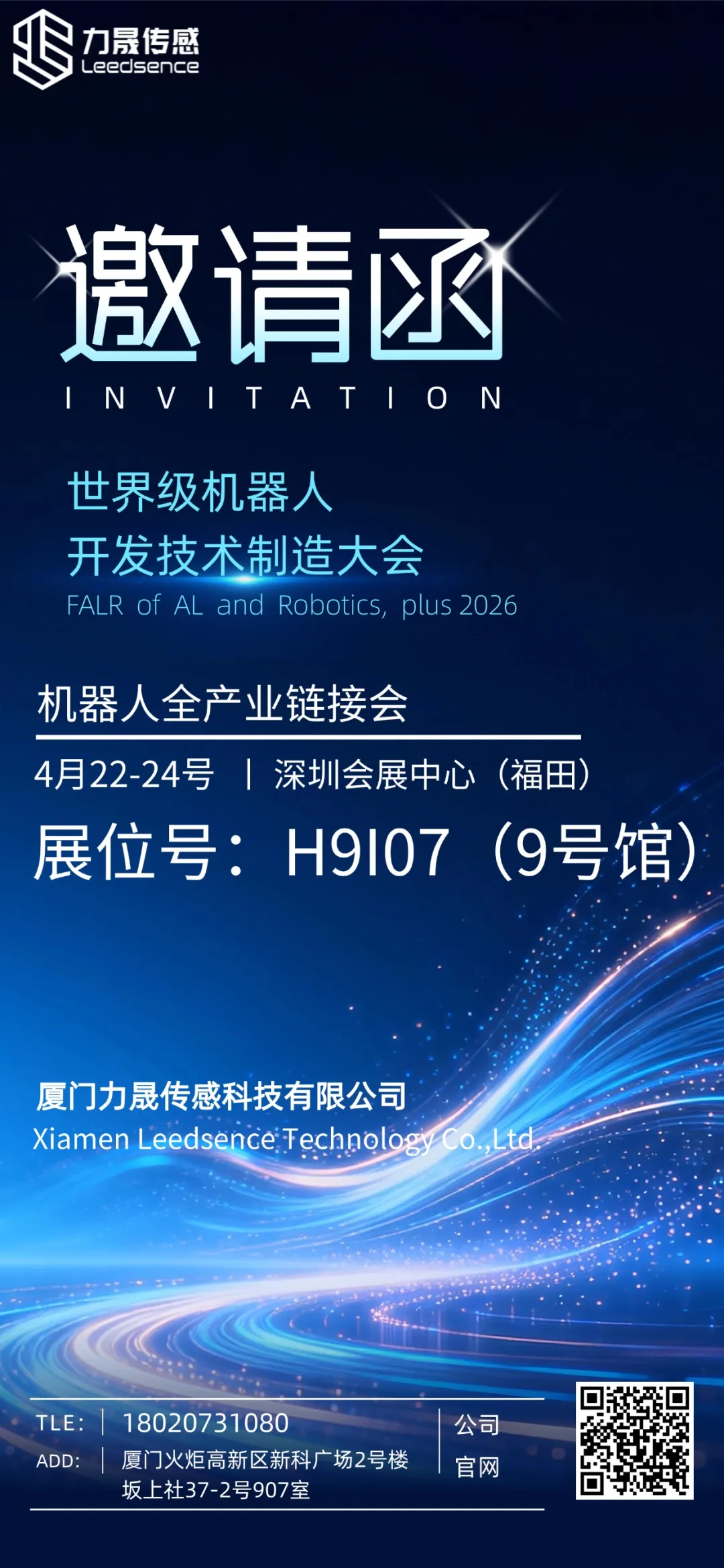 精准感知,赋能智能!厦门力晟传感科技诚邀您共赴2026 FAIR plus机器人盛会 . |当机器人拥有了“触觉”,世界将会怎样? |4月22日-24日,深圳会展中心(福田),我们给您答案。