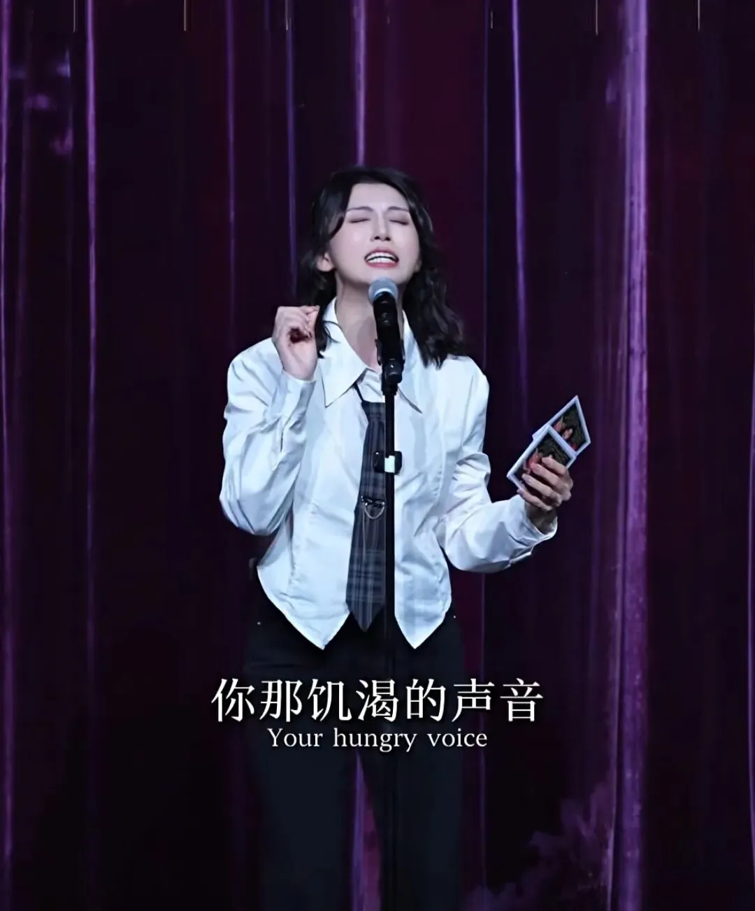 她的演出80%都是即兴互动:随机抓前排观众唠嗑,从你的职业、感情、糗事里瞬间挖梗,把你的故事变成全场爆笑的名场面。