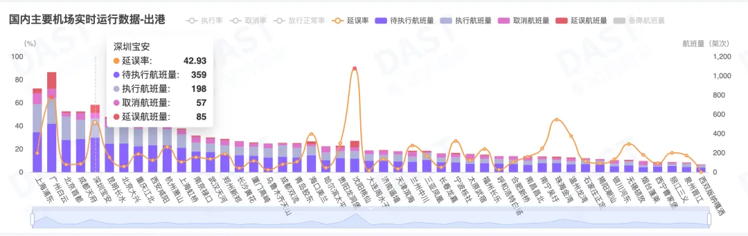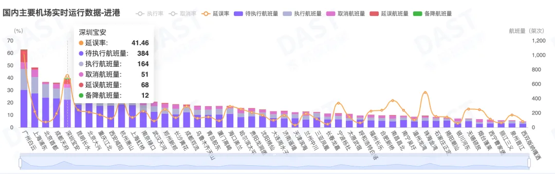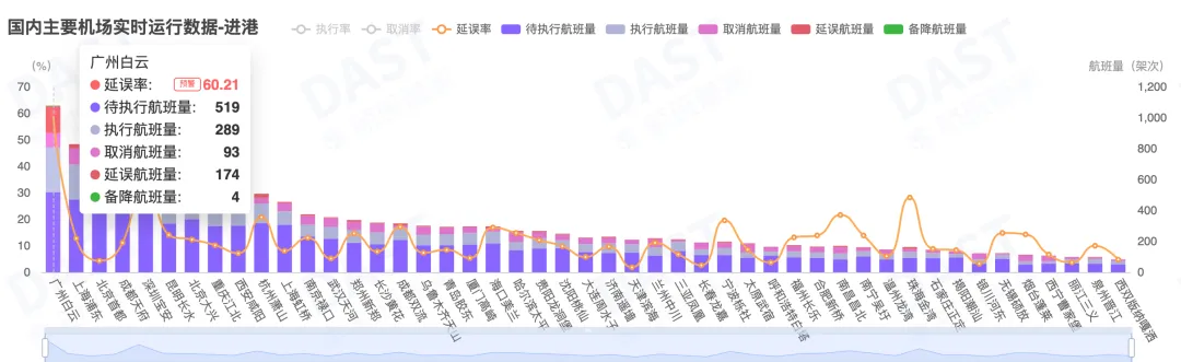广州白云出港航班延误率64.93%,深圳宝安进港备降12班次