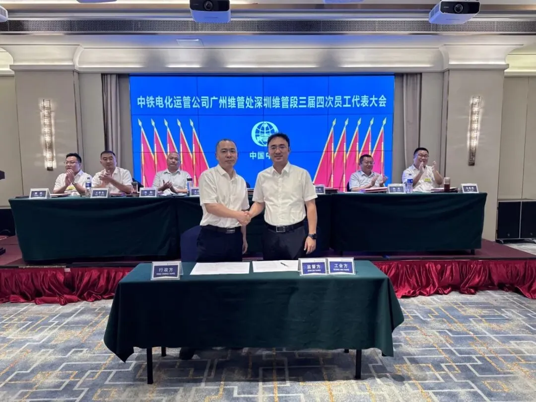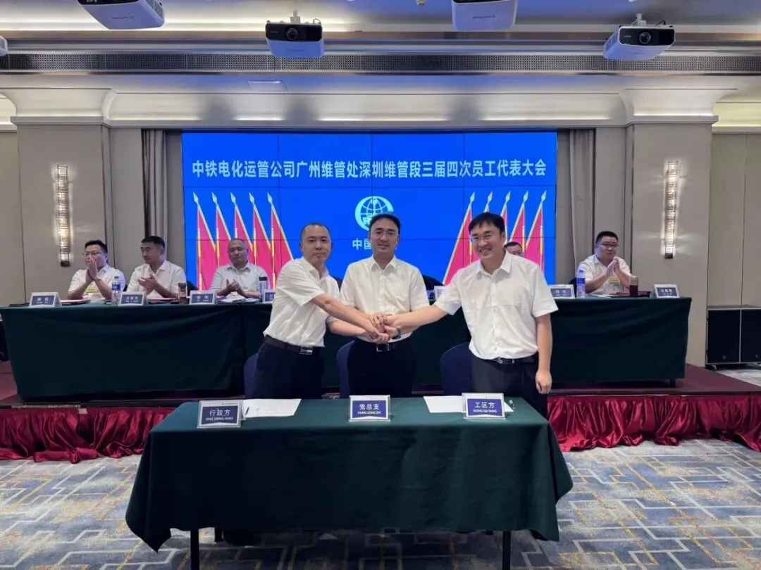 28日下午,大会以现场投票的方式开展了票决、测评各项工作。大会公布了《2025年度安全情况报告》《2026年度集体合同文本》票决结果,民主评议领导班子和班子成员结果及出席广州维管处第二届员工代表大会代表人选;签订了2026年度安全生产责任状、2026年度治安综合治理责任书、2026年度党风廉政建设责任书、2026年度集体合同;表彰了荣获运管公司先进集体和先进个人及段先进集体和先进个人。