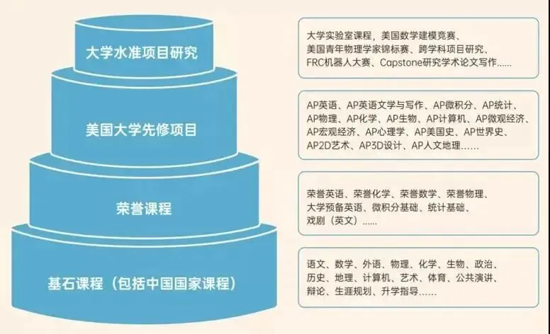 2.书院的美式课程分为四个难度,从基石课程到大学水准研究项目难度依次递增。