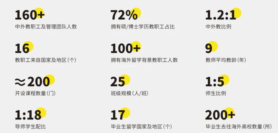 书院拥有一支由160名中外教职工组成的强大团队,其中包括108名专任教师,72%的教师拥有硕士或博士学位,平均教龄达9年。