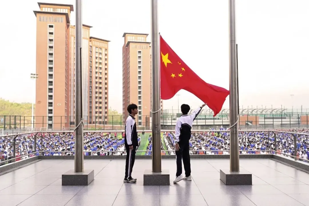 雄壮的国歌响彻校园,鲜艳的五星红旗冉冉升起。全体师生肃立注目,升旗仪式庄严有序、庄重肃穆。红旗猎猎,映照着青春脸庞;国歌铿锵,凝聚起奋进力量。