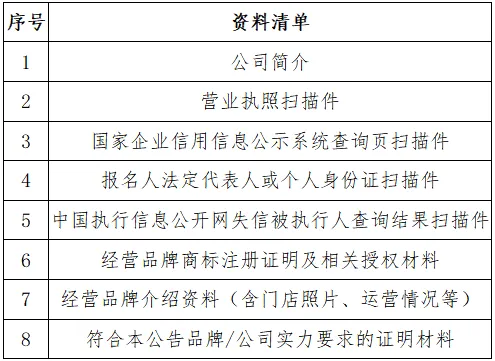 5. 报名人持有自有品牌的,需提供有效的品牌注册证明;如报名人为加盟品牌的,则提供有效的加盟授权书或其它能够证明其拥有品牌独立经营的相关资料,特许经营的提供特许经营证明。前述证明应加盖公章,原件备查。