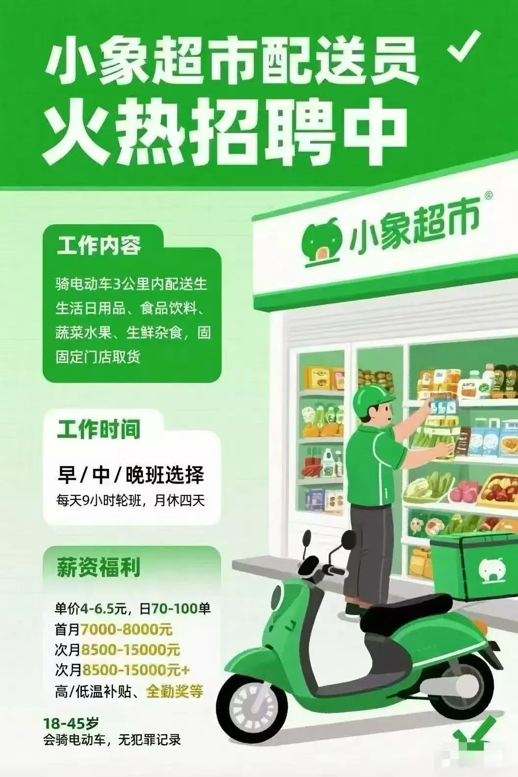 岗位名称:小象超市配送员