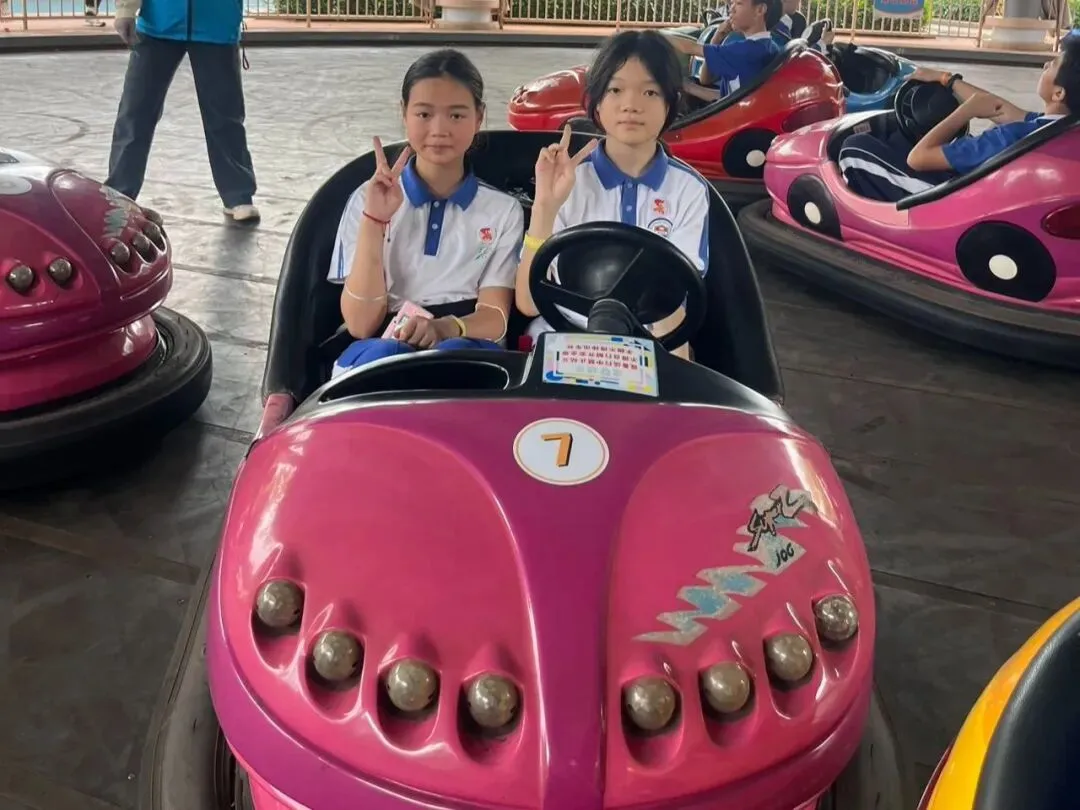 在碰碰车场地里,同学们驾驶车辆自由穿梭,友好碰撞,在欢声笑语中感受速度与协作的乐趣。一旁的机车少年项目更是备受欢迎,大家化身追风少年,随着设施起伏驰骋,体验驰骋的畅快,尽情释放青春活力。