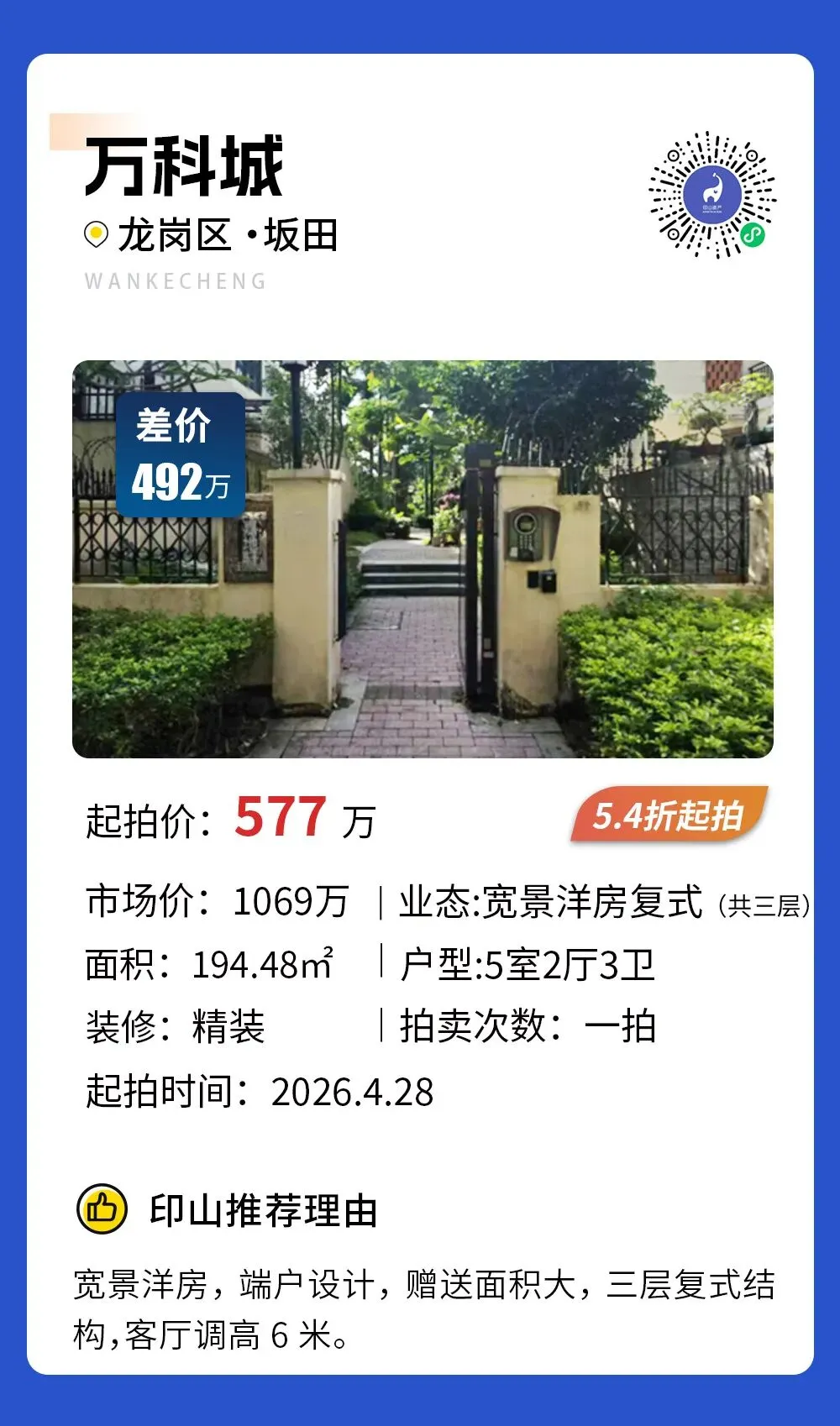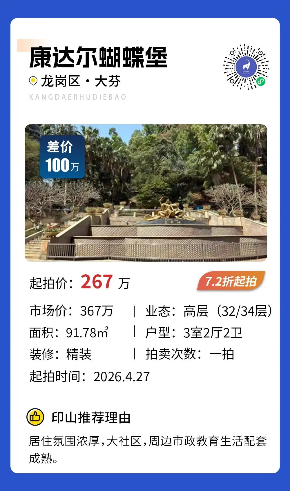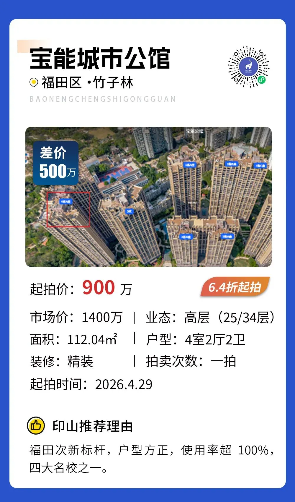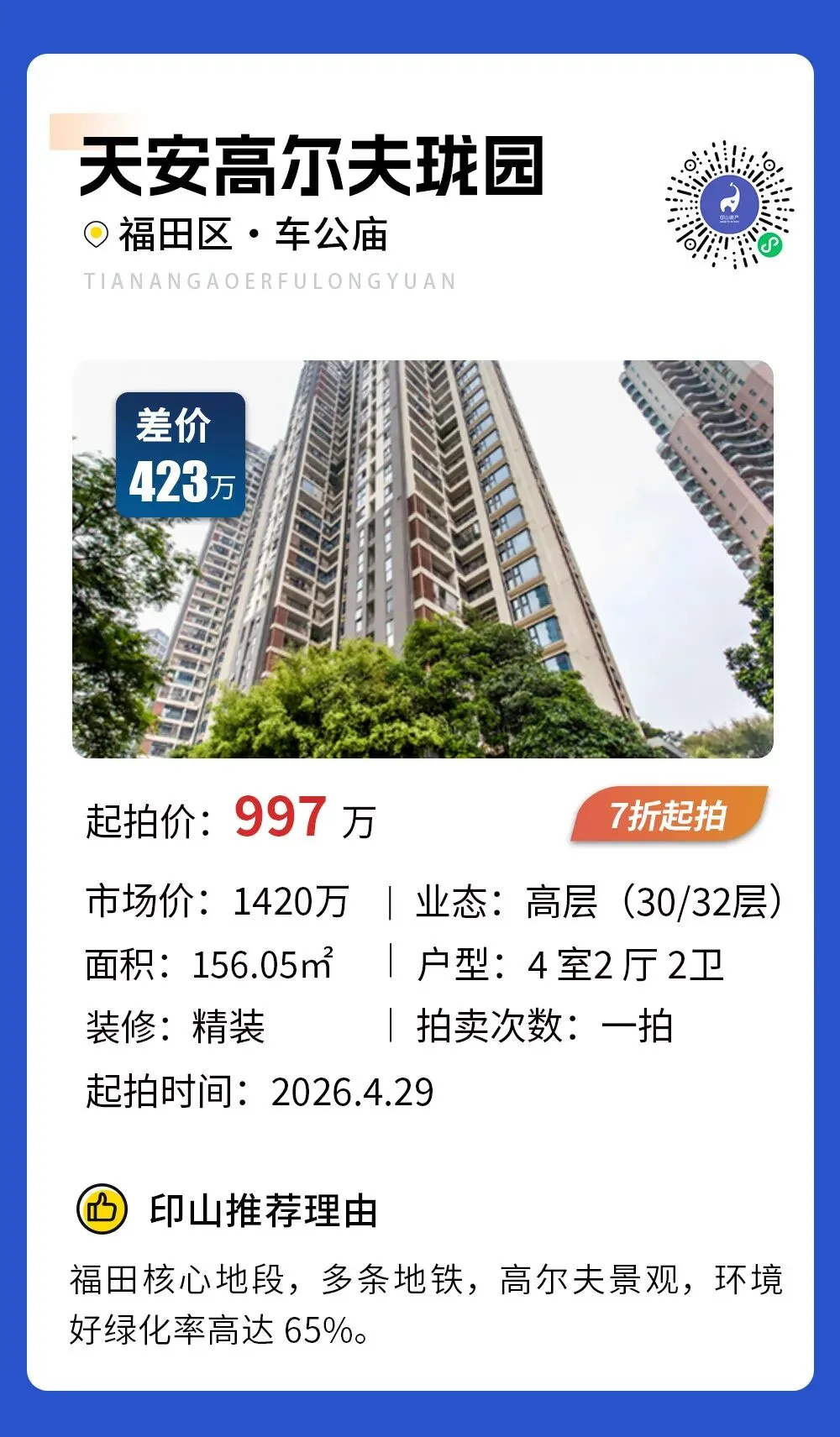 >【甄选法拍】深圳10套甄选房源推荐,捡漏423万,买福田区核心地段4房,享高尔夫景观,路网发达,出行无忧
