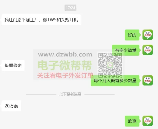 寻找江门恩平加工厂,每月200000套!长期稳定,要能做TWS和头戴耳机的,只限江门恩平的,别的地方不考虑发布时间:今天